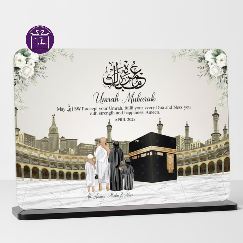 Commemorate a blessed journey shared by two hearts with this personalized acrylic Umrah gift plaque for couples, thoughtfully designed to capture couple Umrah memories in a timeless form. This elegant plaque is ideal for Umrah gifts, meaningful Hajj & Umrah gifting, and heartfelt Umrah celebrations, offering a lasting reminder of faith and togetherness.