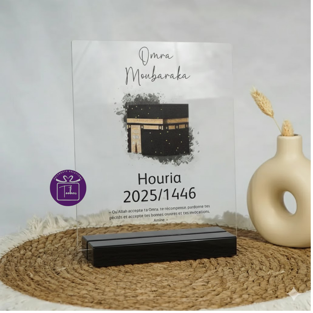 This acrylic plaque is more than a gift—it is a respectful expression of duas, support, and appreciation. Perfect for friends and colleagues alike, it offers a lasting reminder of a blessed Umrah journey without being overly formal or personal.