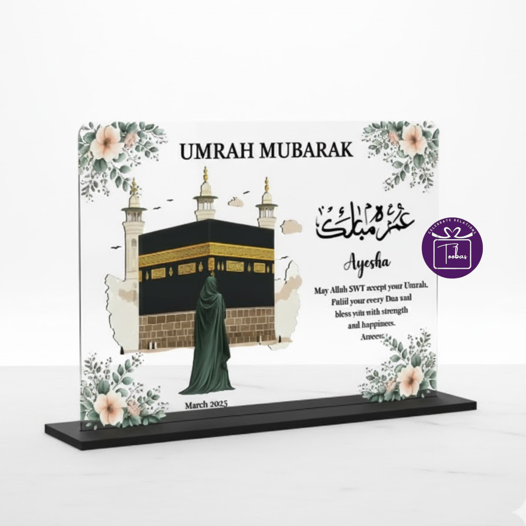 Make your sacred journey unforgettable with our customized acrylic Umrah gift plaque, thoughtfully designed for those looking for meaningful Umrah gifts and refined Hajj & Umrah gifting options. This elegant plaque is perfect for preserving Umrah memories, celebrating Umrah tour memories, and sharing blessings with loved ones in a graceful way.
